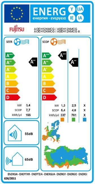 - SEER 7.3 ja EER 3.65