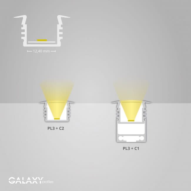 PL3 LED uppoas. profiili, alumiini eloksoitu, 200cm Galaxy®-profiles profiilivalikoima on tarkoitettu LED-nauhoille, joissa on kiinnitysteippi valmiina. Tyylikkäät profiilit toimivat hyvänä lämmönjohtimena LED-nauhalle ja edesauttavat nauhan pitkää ikää. Mallisto kattaa laajan valikoiman erilaisia profiileja pinta- ja uppoasennukseen sekä kaikki tarvittavat lisätarvikkeet. Värivaihtoehdot ovat eloksoitu, valkoinen tai musta. Suojakansi parantaa valaistusominaisuuksia ja toimii samalla mekaanisena suojana avoimille LED-nauhoille. Profiilit soveltuvat sisä- ja ulkokäyttöön. Mallistosta löytyy myös LED-nauhojen jäähdytysprofiilit.