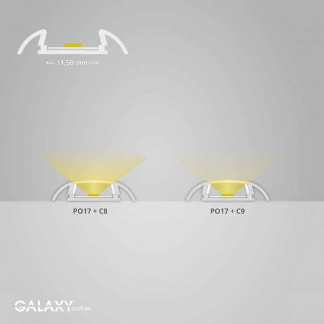 PO17 LED profiili, alumiini eloksoitu, 200cm Galaxy®-profiles profiilivalikoima on tarkoitettu LED-nauhoille, joissa on kiinnitysteippi valmiina. Tyylikkäät profiilit toimivat hyvänä lämmönjohtimena LED-nauhalle ja edesauttavat nauhan pitkää ikää. Mallisto kattaa laajan valikoiman erilaisia profiileja pinta- ja uppoasennukseen sekä kaikki tarvittavat lisätarvikkeet. Värivaihtoehdot ovat eloksoitu, valkoinen tai musta. Suojakansi parantaa valaistusominaisuuksia ja toimii samalla mekaanisena suojana avoimille LED-nauhoille. Profiilit soveltuvat sisä- ja ulkokäyttöön. Mallistosta löytyy myös LED-nauhojen jäähdytysprofiilit.