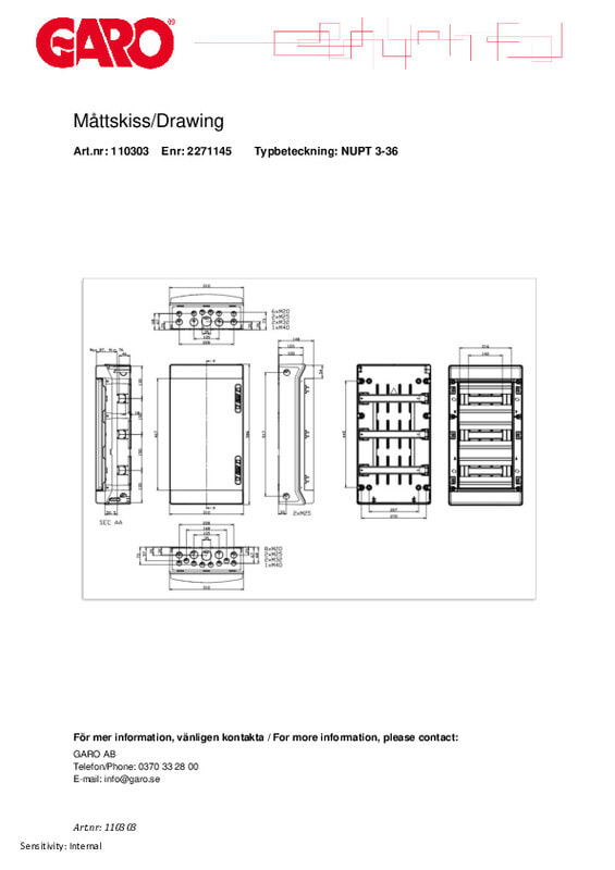 GARO moduulikotelo pinta ABS, NUPT 3-36 läpinäk ovi sivulle, IP65, 3rivinen, 36 mod