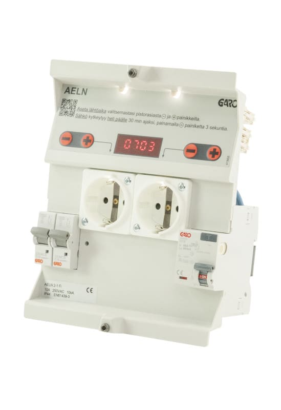 Kotelopaketti pistorasiaelementillä. Kytkentäalustassa on helpostikytkettävä 25 mm2 Al/Cu + 16 mm2 Al/Cu -kytkentärima. Pistorasiaelementti kytketään alustaan pikaliittimellä.