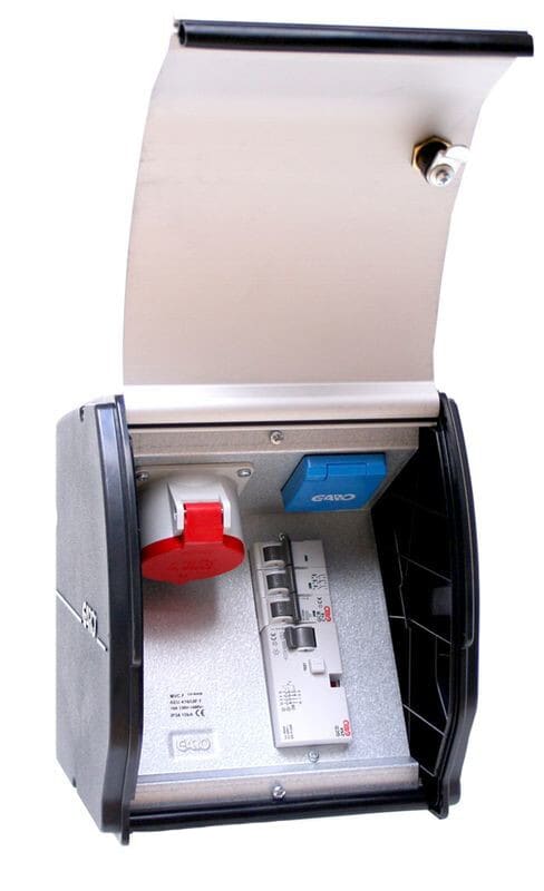 Kotelopaketti pistorasiaelementillä. Kytkentäalustassa on helpostikytkettävä 25 mm2 Al/Cu + 16 mm2 Al/Cu -kytkentärima. Pistorasiaelementti kytketään alustaan pikaliittimellä.
