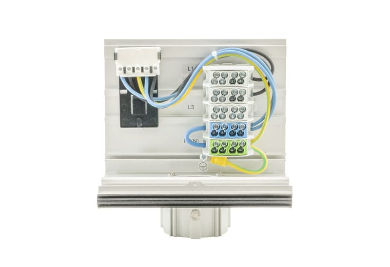 Kotelopaketti pistorasiaelementillä. Kytkentäalustassa on helpostikytkettävä 25 mm2 Al/Cu + 16 mm2 Al/Cu -kytkentärima. Pistorasiaelementti kytketään alustaan pikaliittimellä.