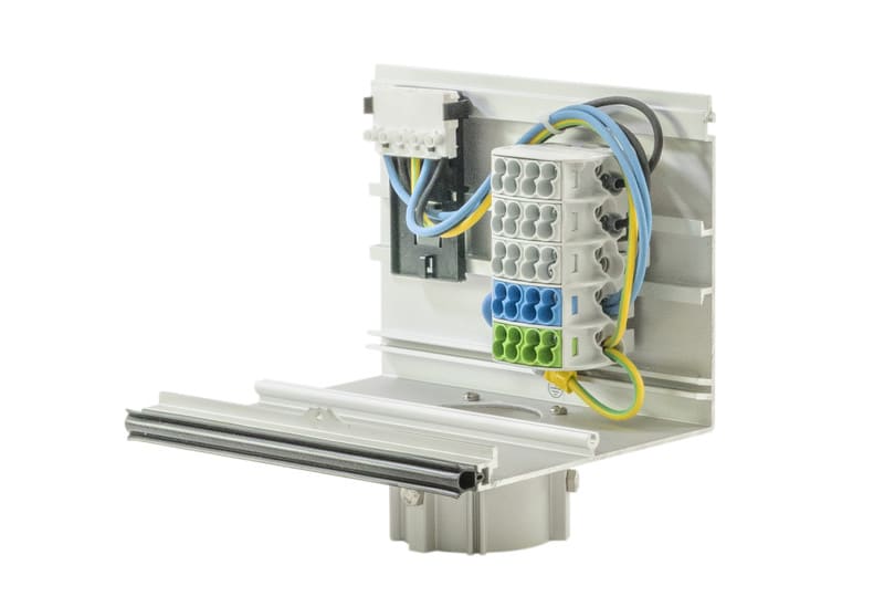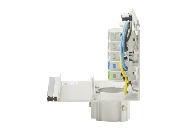 Kytkentäalustassa on helpostikytkettävä 25 mm2 Al/Cu + 16 mm2 Al/Cu -kytkentärima. Pistorasiaelementti kytketään alustaan pikaliittimellä.
