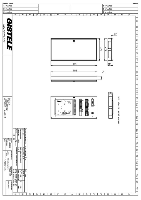 GISTELE - Ryhmäkeskus-data pinta Fe - PASUD402 40A 2xVV 12xC16+9xC10
