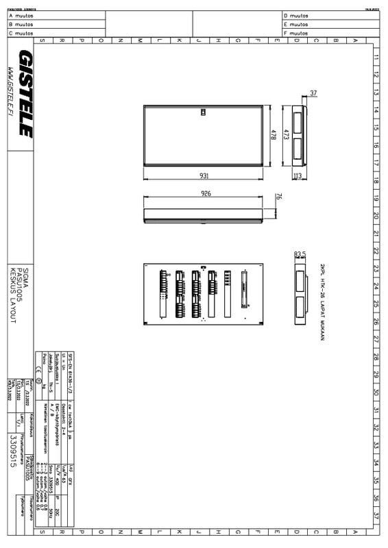 GISTELE - Ryhmäkeskus pinta Fe - PASU1005 63A5xVV 21xC16+18xC10