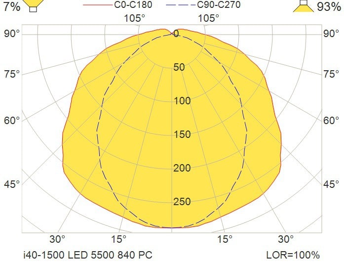 GLAMOX - Yleisvalaisin pinta - I40-1500 LED 5500 DALI 840TWPC