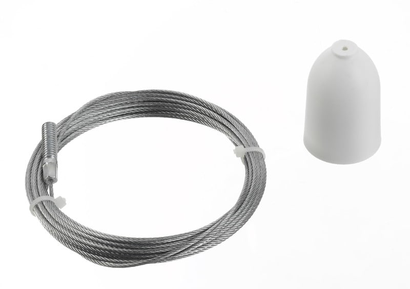Lisätietoja5m säädettävä ripustusvaijeripakkausSisältää seuraavatkomponentit: kattokiinnike, suojakupu, säätöruuvi ja vaijeri M6-kierteellä Lisätietoja