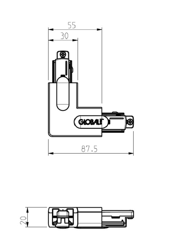 L-kulmasyöttökappale Global Trac Base - 1-vaihekiskoihin