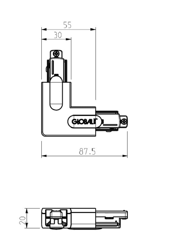 L-kulmasyöttökappale Global Trac Base - 1-vaihekiskoihin