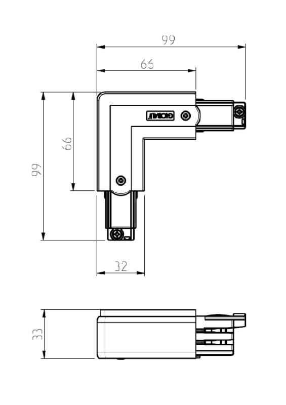 L-kulmasyöttökappale GLOBAL Trac Pro - 3-vaihekiskoon