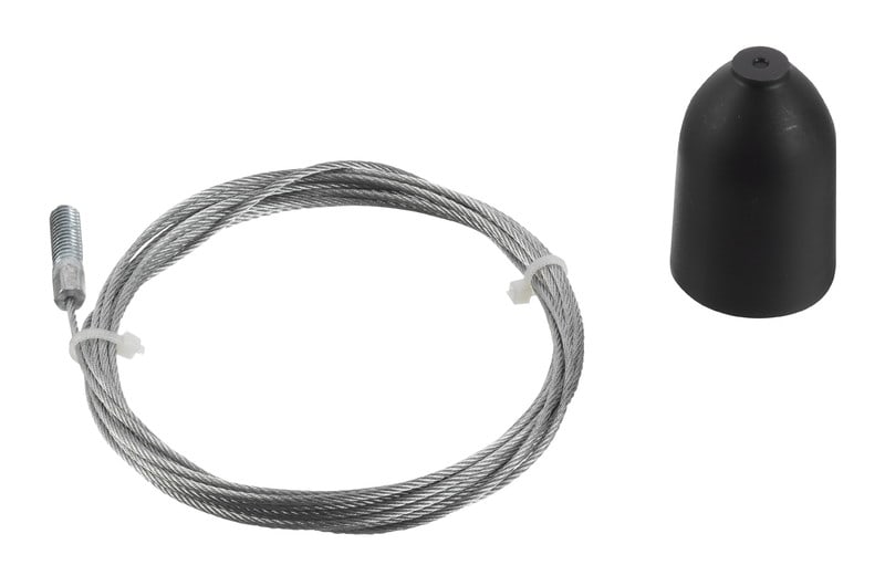 1,5m säädettävä ripustusvaijeripakkaus. Fmax. 150N. Sisältää seuraavat komponentit: SKB30 kattokiinnike, suojakupu, säätöruuvi ja vaijeri M6-kierteellä.