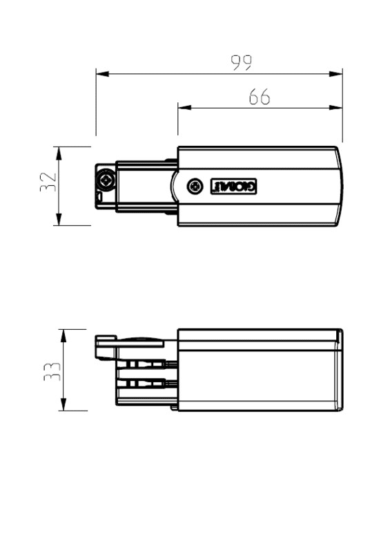 Päätysyöttörasia GLOBAL Trac Pro - 3-vaihekiskoon