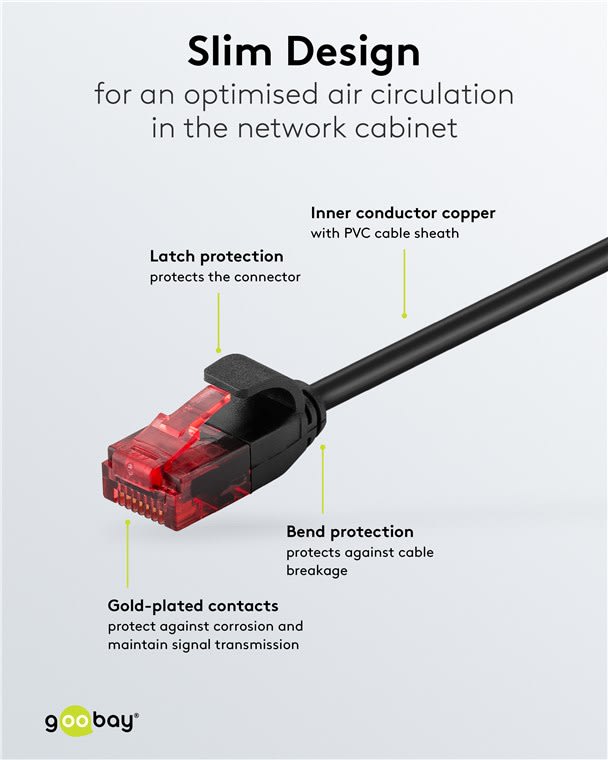 GOOBAY - Kytkentäkaapeli - CAT 6, U/UTP, ohut, 3m, mus