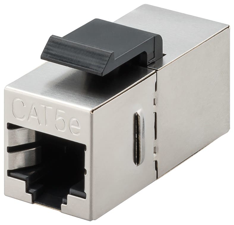 Kaksipuolinen RJ45‑kytkin (2× naaras, 8P8C) verkkojohtojen jatkamiseen ja liittämiseen. Sopii standardoituihin Keystone‑paikkoihin (19,2 × 14,9 mm) patch-paneeleissa, uppo- ja pintarasioissa. Suojattu metallirunko ja STP‑rakenteen ansiosta erinomainen signaalin suojaus. Soveltuu pysyvien kaapelointien jatkoksi ja PoE+‑syötölle (IEEE 802.3at).