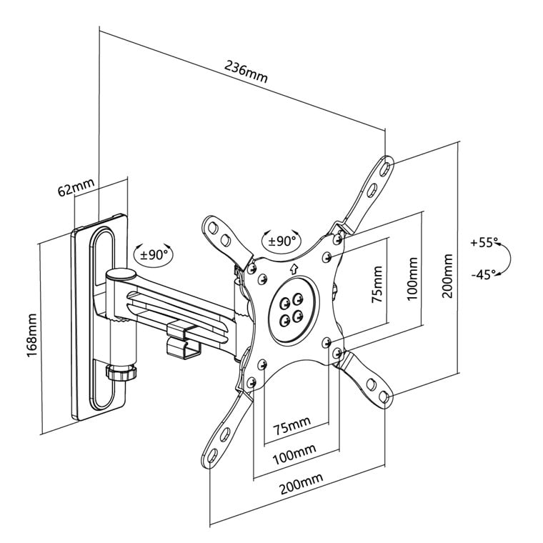 - VESA-yhteensopivuus: 75x75, 100x100, 200x100, 200x200 mm
