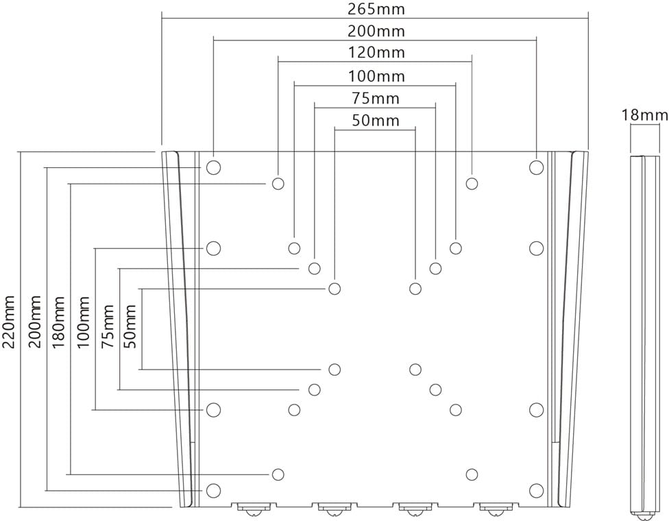- VESA-yhteensopivuus: 50x50, 75x75, 100x100, 200x100, 200x200 mm