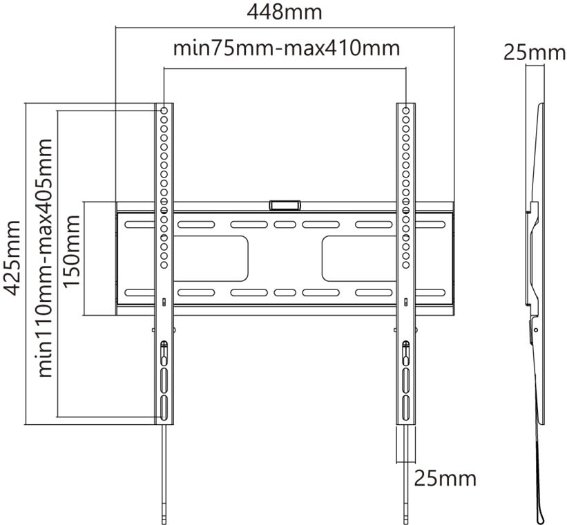 Goobay Pro FIXED seinäteline (koko M) keskikokoisille televisioille. Erittäin ohut muotoilu jättää seinän ja television väliin vain 25 mm, mikä viimeistelee ultralitteiden televisioiden elegantin ilmeen. Automaattinen Click-in & Easy Release -mekanismi mahdollistaa television turvallisen napsautuksen paikalleen ja irrotuksen. Ei siis lukitusruuveja, jotka tarvitsee kiinnittää manuaalisesti, mikä tekee asennuksesta erittäin helppoa.