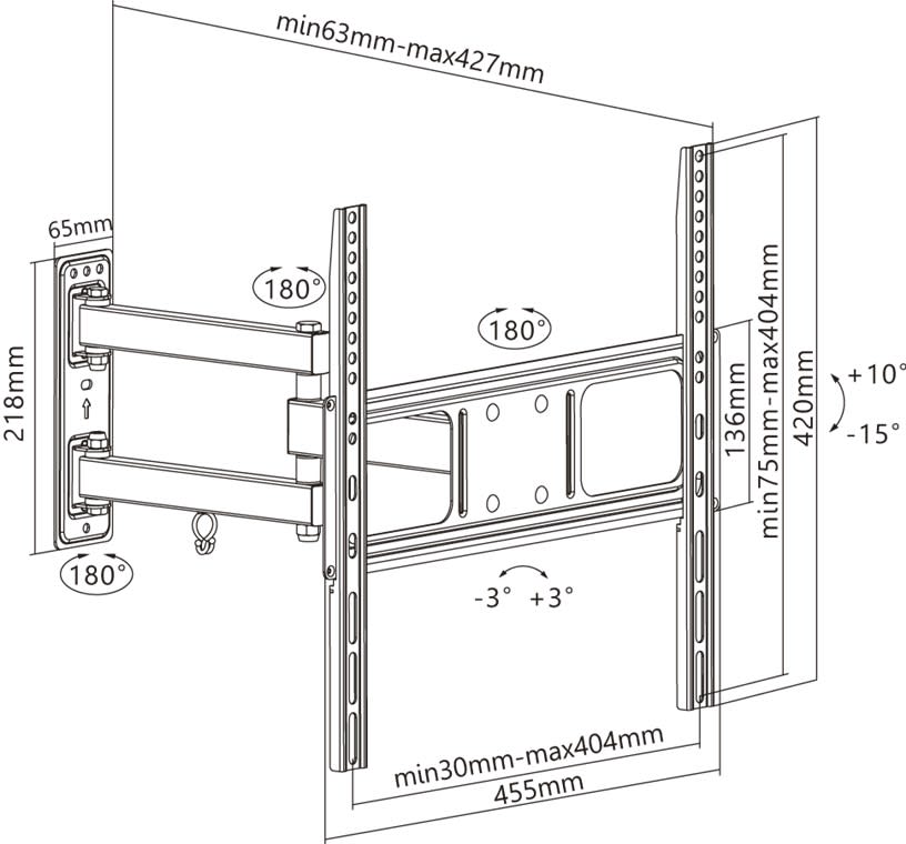 Goobay Basic FULLMOTION -seinäteline keskikokoisille televisioille tarjoaa optimaalisen kallistuskulman jopa 427 mm:n etäisyydellä seinästä. Full Motion -toiminto tuo maksimaalista joustavuutta: voit kallistaa ja kääntää televisiota katsoaksesi sitä mistä tahansa huoneen osasta. Integroitu kaapelinhallinta takaa siistin asennuksen.