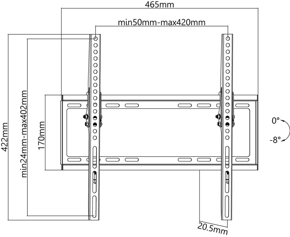 Goobay Basic TILT seinäteline keskikokoisille televisioille (32–55"). Tarjoaa kallistusominaisuuden ja helpon asennuksen. Erittäin ohuen muotoilun ansiosta kiinnikkeen syvyys on vain 20,5 mm, mikä korostaa ultralitteiden televisioiden eleganttia ilmettä. Enintään 8° kallistuskulmallaan kiinnike sopii erinomaisesti asennettavaksi hieman tavanomaista istumakorkeutta ylemmäs.