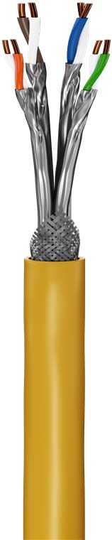 LAN-kaapeli CAT 8.1 -kaapelointireitin rakentamiseen GHMT-sertifioitu 1 x 24 m:n siirtoetäisyydelle asennuskaapelille ja 2 x 3 m:n patchcordille 2-liitinkanavassa (8.1-standardiluokka I, toimintataajuus enintään 2 GHz) Sopii 25GBase-T- ja 40GBase-T Ethernet-verkkoihin (40 gigabitin yhteensä) ja taaksepäin yhteensopiva 10BASE-T:n, 100BASE-TX:n, 1000BASE-T:n kanssa Jopa 2 000 MHz:n lähetyskaistanleveydellä Ethernet-kaapelin kaistanleveys on 4 kertaa suurempi kuin CAT-6A-kaapeleilla Ydinparit alumiinifoliosuojauksella (PiMF) ja S/FTP-suojauksella alumiinipunoksesta häviöttömään signaalinsiirtoon Vähäsavuinen ja halogeeniton asennuskaapeli strukturoituun asennukseen sisätiloihin Verkkokaapeli on rakennustuoteasetuksen (CPR) ja DCA-palosuojausluokan mukainen