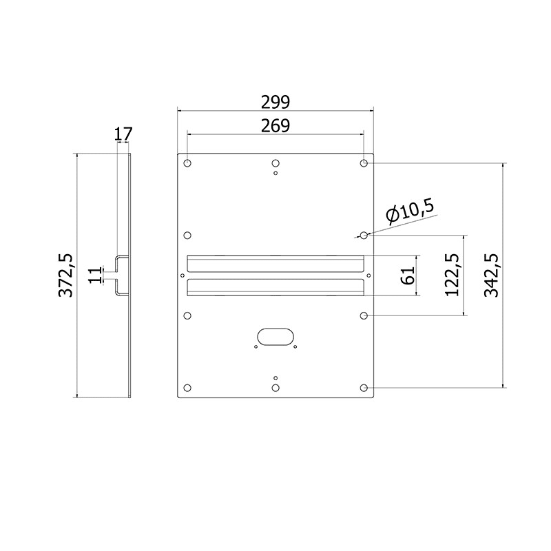 Kymmenen kiinnityspistettä kiinnityspulteille tai -ruuveille mahdollistavat jämerän kiinnityksen. Neljä pienempää apureikää esikiinnittämiselle auttavat asennuksessa, jolloin varsinaisten kiinnitysreikien poraaminen on vaivatonta. Avoin pulttiura mahdollistaa lukuisten eri valonheittimien kiinnittämisen LMP2031-seinäkiinnikkeeseen.