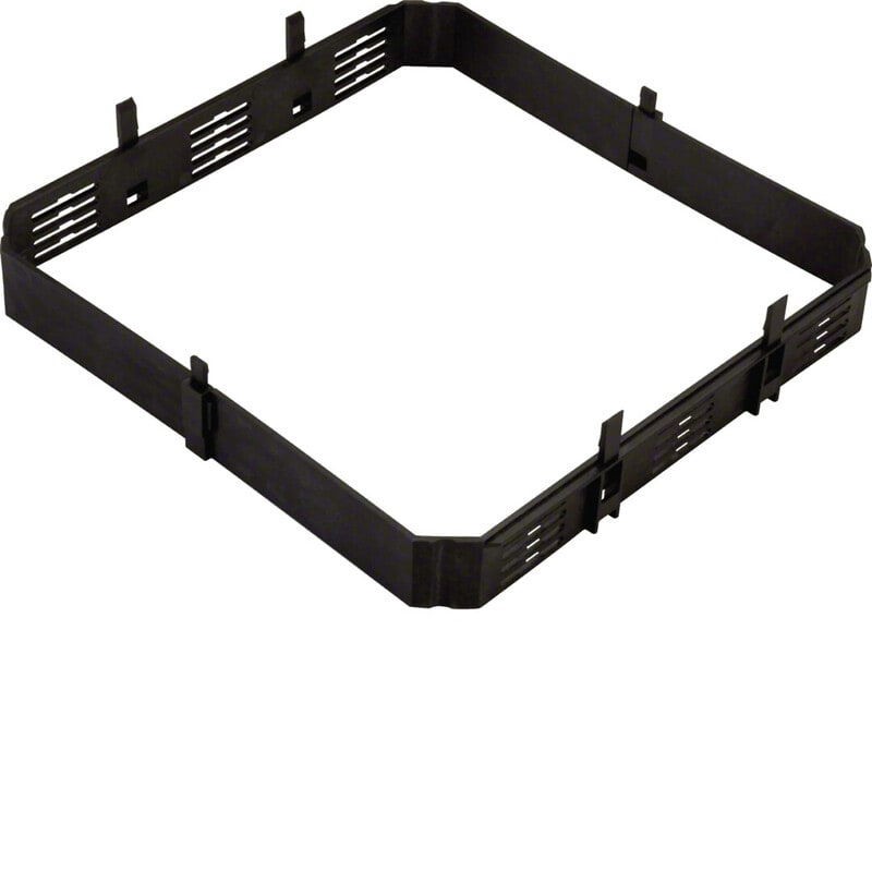 Kehys PA jolla voidaan korottaa lattiarasioiden V-, VAN-, EK-, MK-,EKSK-Q12/R12 kojerasia tilaa 30mm. Snap on kiinnitys. Kiinnitysrasterin jatkokehys kojerasiakiinnitysrasterin jatkamiseksi 30 mm PA lattiarasiakansille VQ12/R12 Kiinnitysrasterin jatkokehys kojerasian kiinnittämiseksi normaalia syvemmälle lattiarasiakannen alla. Portaittainen säätömahdollisuus, maksimisäätövaran kasvatus 30 mm per jatkokehys. Materiaali: Polyamidi (PA) Halogeeniton: kyllä Väri: musta