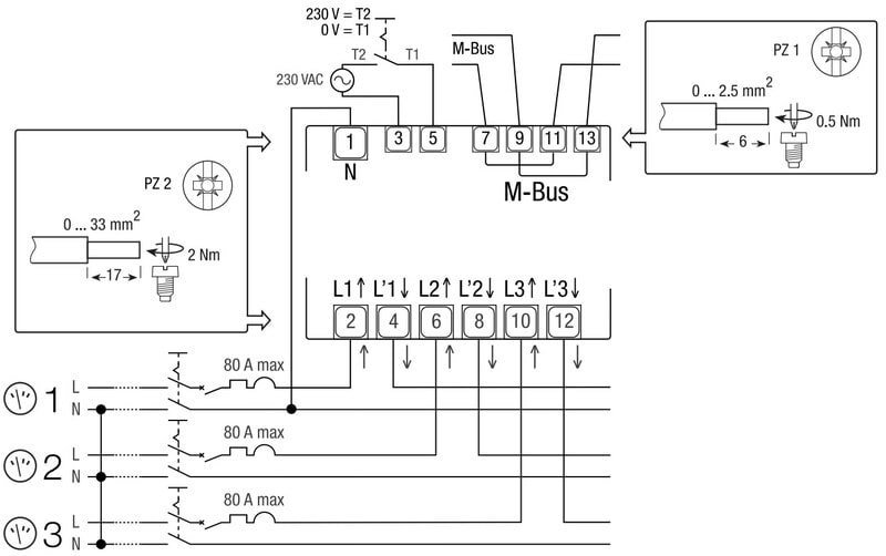 HAGER - Energiamittari - ECM180T 1v suora 3x80A MBUS