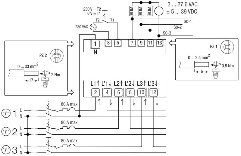 HAGER - Energiamittari - ECP180T 1v suora 3x80A S0