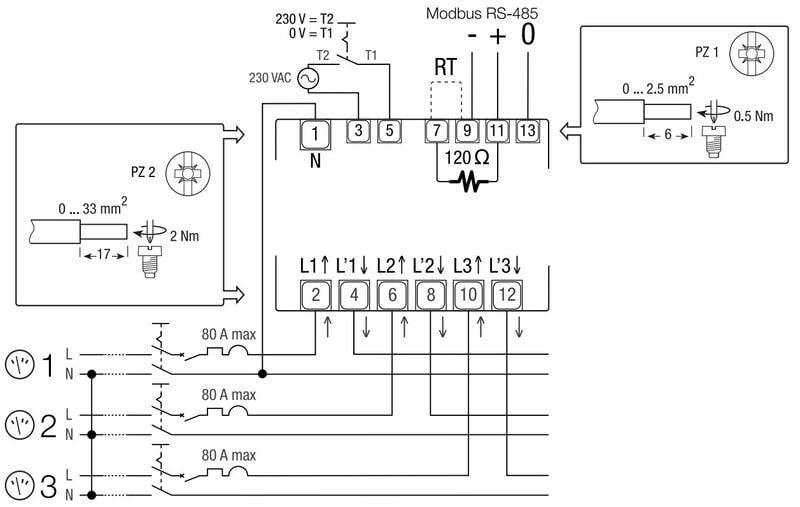 HAGER - Energiamittari - ECR180T 1v suora 3x80A MODBUS