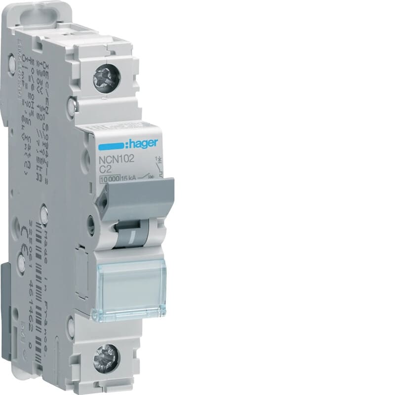 HAGER - Johdonsuojakatk. 1-nap C 10kA - NCN102 2A RL
