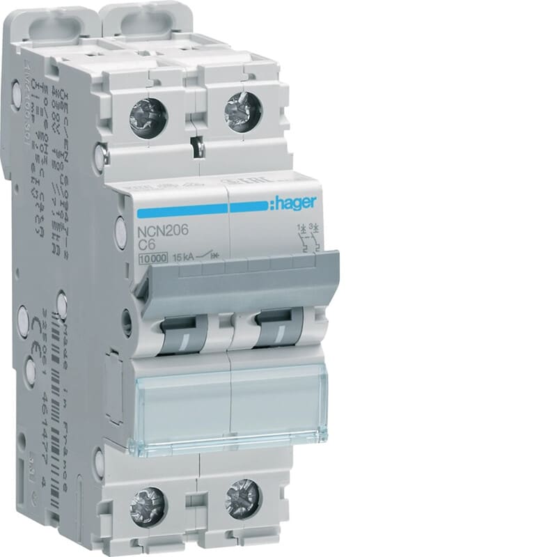 HAGER - Johdonsuojakatk. 2-nap C 10kA - NCN206 6A RL