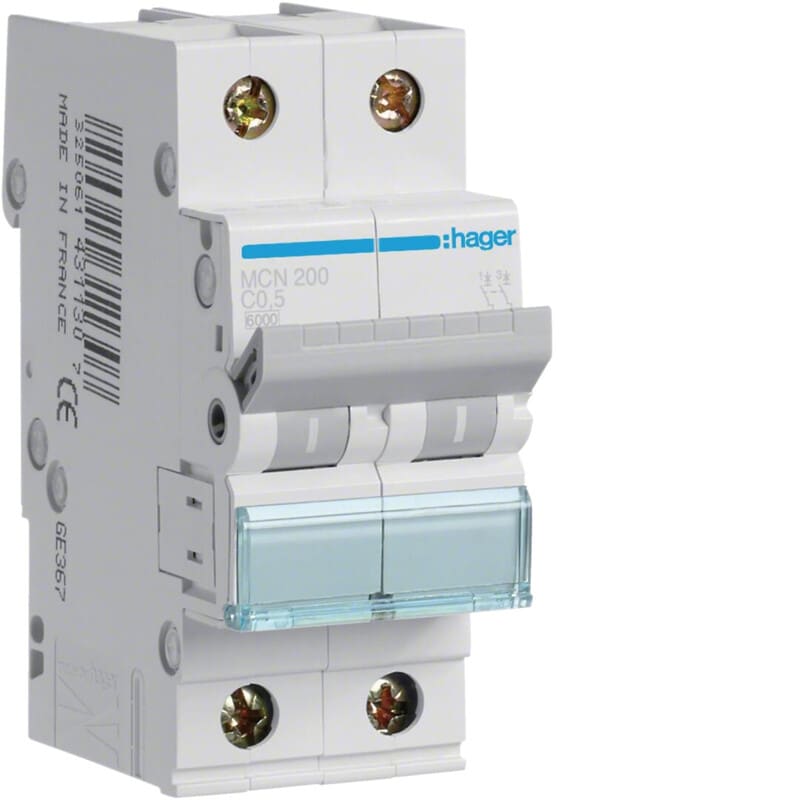 HAGER - Johdonsuojakatk.2-nap C 6kA - MCN200E 0,5A