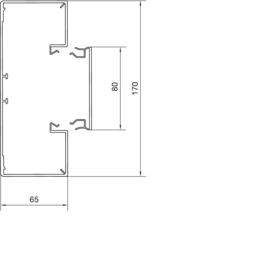 Kanavakorkeus: 65 mm Kanavaleveys: 170 mm Väri: liikenteenvalkoinen RAL-värikoodi: 9016 Materiaali: PC/ABS Halogeeniton: kyllä Pituus: 2000 mm Kansien määrä: 1 Lisättävissä väliseiniä: 2Pohjarei'illä: kyllä Kanavajatkoilla: ei Suojakalvolla: ei