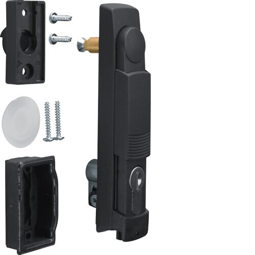 Kääntövipu, univers, lukkosylinterillä 40mm, sarja No. 455 Kiertokahva, univers, lukolla, profiilipuolisylinteri 40 mm, lukituskoodi 455, käytettäessä ikkunallisia ovia, kiertokahvoja ei voida käyttää. Käytettäessä kiertokahvaa, lukitustangot tulee vaihtaa (FZ832N-FZ841N)