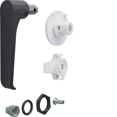 Lukkosalpa, univers, pistoolikahvalla, kotelolle IP44 / IP54 Pistoolikahvallinen salpa univers-koteloille, vaihdettavissa kotelon alkuperäisen läppäkahvan tilalle.