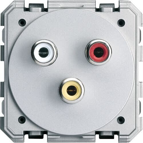RCA-liityntärasia gallery 45 2M valkoinen, punainen, keltainen RCA-liitäntärasia 3-osainen kuvasignaalin ja stereoäänen vasemman ja oikean kanavan liitäntään lähettimen ja vastaanottimen välille. Käytettäväksi 45x45 mitoitetuissa johtokanavissa, lattiarasioissa ja pistorasiapylväissä. Pikakiinnitys profiilien etureunaan kiinnityskynsillä. Keskiölevy tilattava erikseen.