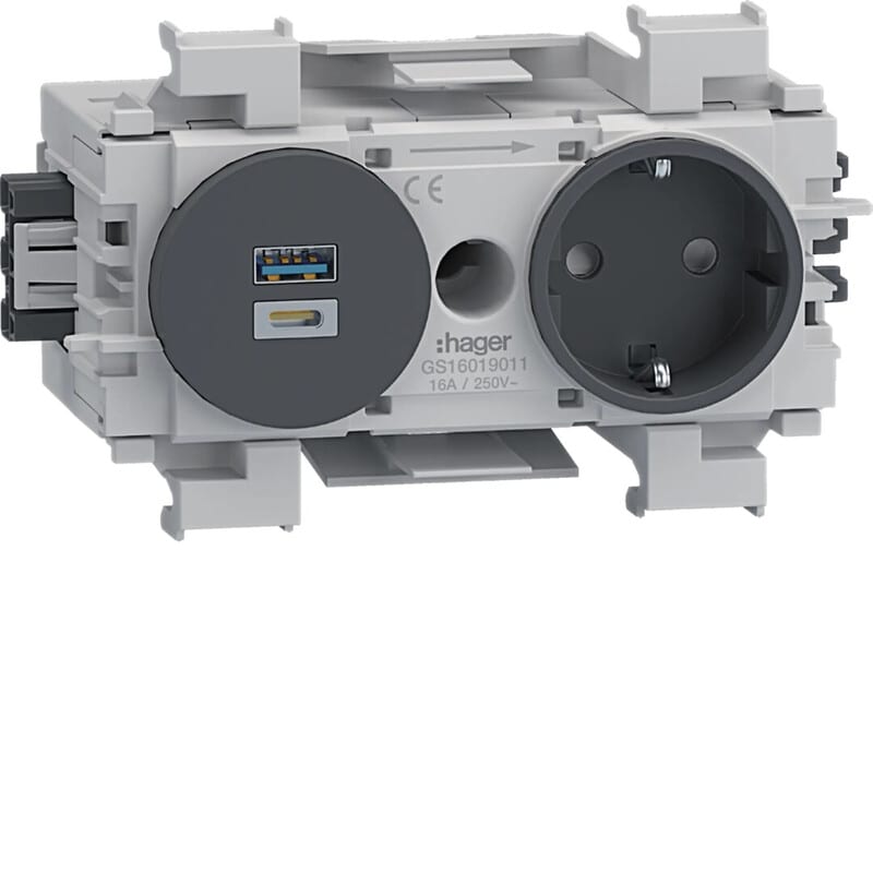 HAGER - Kanavapistorasia Ecoline - GS1601 PR + USB A-C HF MUS
