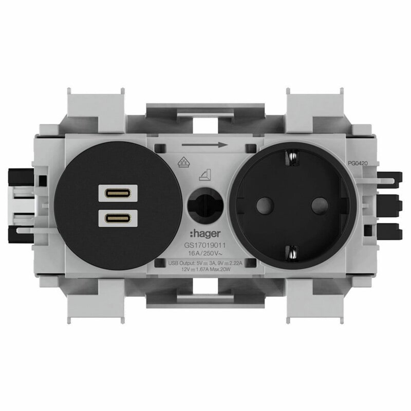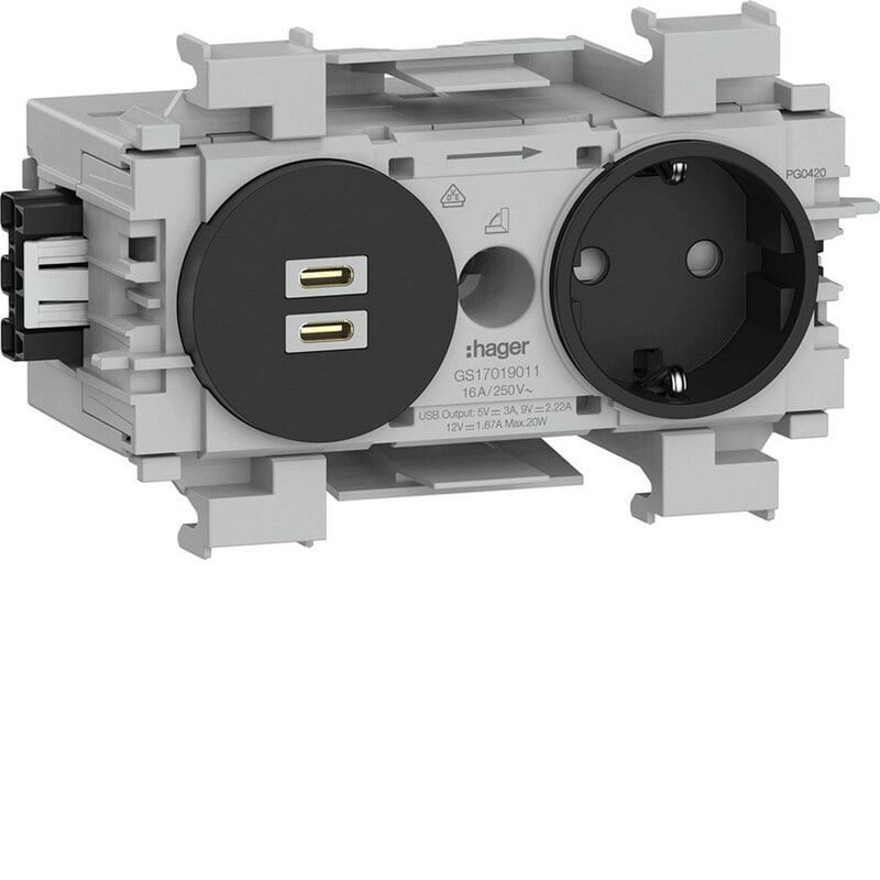HAGER - Kanavapistorasia - GS1701 PR + USB C-C HF MUS