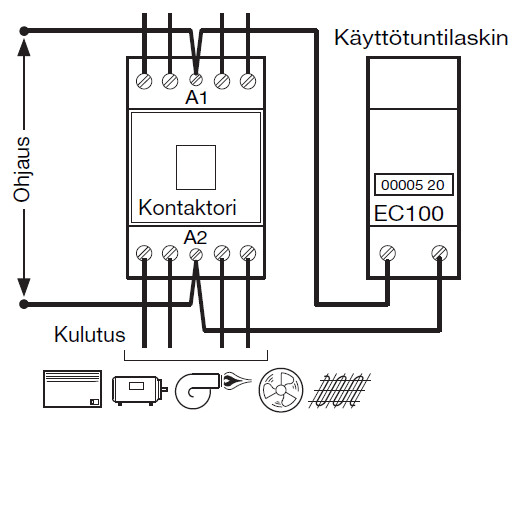 HAGER - Käyttötuntilaskin 230VAC/50Hz - EC100