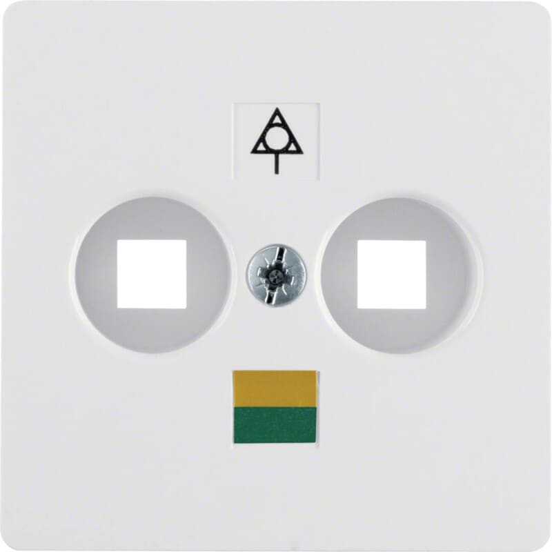 Keskiölevy kiiltävä puhtaavalkoinen potentiaalintasauspistorasialle 1061. Asennus soviterenkaan 11087009 kanssa K.1 peitelevyyn. Keskiölevy ponteiaalintasauspistorasialle Varoitus! Käytä ainoastaan vastaavan sarjan keskiölevyn soviterenkaan kanssa. Kaksoispistorasialle kelluvilla lähdöillä DIN 42801 mukaan - merkinnällä