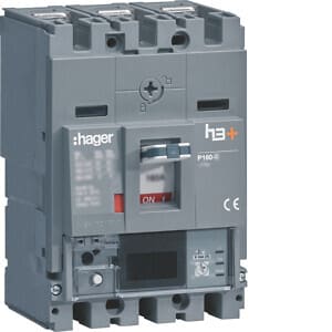 Kompaktikatkaisija standardin DIN EN 60947-2 mukaan suojaa sähköasennusta ja verkkoa ylikuormitukselta ja oikosuluilta. Elektronisen suojareleen laukaisukäyrä voidaan asettaa integroidulla OLED-näytöllä, yhdistettävällä ovinäytöllä tai katkaisijaan adapterikaapelilla liitettävän tietokoneen Hager Power Setup -sovelluksella. Ylikuormitusvirran (Ir), lyhytaikaisen viivästetyn oikosulkusuojan (Isd) ja hetkellisen oikosulkusuojauksen (Ii) raja-arvot voidaan asettaa erikseen, samoin kuin aikaviive tr ylikuormitustapauksissa ja aikaviive tsd lyhytaikaista viivästettyä oikosulkulaukaisua varten. Lisäksi laukaisukäyrää voidaan säätää kääntäen verrannollisesti oikosulkuvirtojen Ii ja Isd sekä lyhytaikaisen viiveen ja välittömän laukaisuajan välillä olevan aktivoitavan I²t-toiminnon avulla. Valmis-LED palaa vihreänä, kun katkaisija on käyttövalmis, ja vilkkuu oranssina, kun katkaisijassa havaitaan sisäinen vika. Ylivirran merkkivalo alkaa vilkkua punaisena, kun I = 105 % Ir ja pysyy punaisena, kun I > 112 % Ir. Laitteen vipu voidaan lukita ON- ja OFF-asentoihin vipuun integroidun toiminnallisuuden ja normaalin riippulukon avulla, ilman muita lisätarvikkeita. Katkaisumekanismia voidaan testata ja pääkoskettimet avata vapautuspainikkeella. Saranoitu kansi, jossa on kiinteä pikalukitusruuvi, mahdollistaa pääsyn asennustilaan erikseen tilattavien apukoskettimien ja laukaisimien asentamiseksi. Katkaisijan sisälle asennetut lisävarusteet voidaan havaita ja tunnistaa katseluikkunasta avaamatta saranoitua kantta. Vakiovarusteena on potentiaalivapaa hälytyskosketin poiskytkentää varten, kun on olemassa ylikuormituksen aiheuttama katkaisuvaara. Tämä on suljettu, kun I > 90 % Ir (oletusarvo muutettavissa). Tämä ilmaistaan ylimääräisellä LED-valolla. Se palaa oranssina, kun kosketin on kiinni. Asetettu laukaisukäyrä voidaan testata ja dokumentoida diagnostiikka- ja konfigurointityökalun käyttöliittymän kautta. Integroitu mittaustekniikka mittaa kaikki energiat luokan 1 tarkkuudella IEC 61557-12:n mukaan. Energian osittaislaskuri voidaan nollata. H3+ Energy -kompaktikatkaisijaa voidaan käyttää myös virrankulutusarvojen mittaukseen. Nämä mittaukset voivat perustua kiinteään tai liukuvaan aikaväliin, joka voidaan asettaa välillä 5 - 60 minuuttia 1 minuutin välein. Mittausikkuna voidaan synkronoida tiedonsiirtojärjestelmästä COM-moduulin kautta lähetettävän signaalin kanssa. Näiden kulutusarvojen avulla voidaan luoda trendejä ja ennusteita näiden tietojen perusteella. Ne tarjoavat perustiedot kuormitusprofiilin kehittymisestä. Lisäksi h3+ Energy -kompaktikatkaisijat mittaavat virran ja jännitteen harmonisen kokonaissärön (THD).