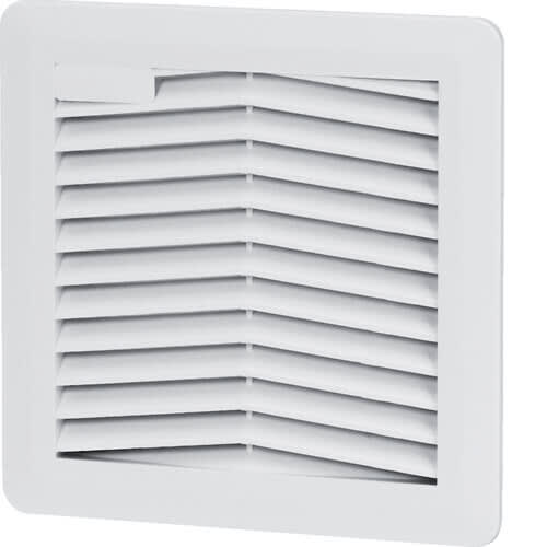 Tuuletusritilä 150x150mm IP54 Tuuletusritilä orion plus suodattimella korvausilman päästämiseksi asennuskoteloon, koko 150 x 150 mm, väri vaaleanharmaa RAL 7035.