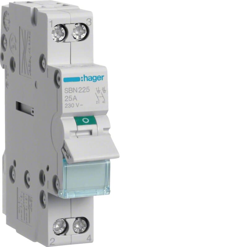 HAGER - Kuormankytkin vipu - SBN225 0-1 2N 25A 230VAC DIN