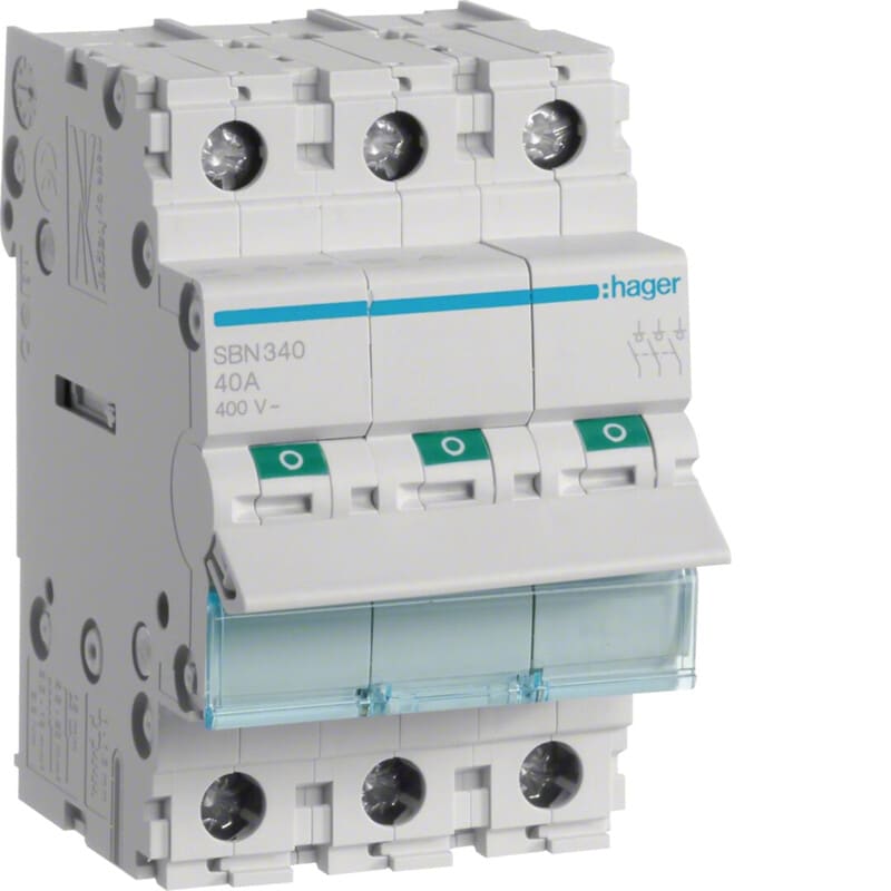 HAGER - Kuormankytkin vipu - SBN340 0-1 3N 40A 400VAC DIN