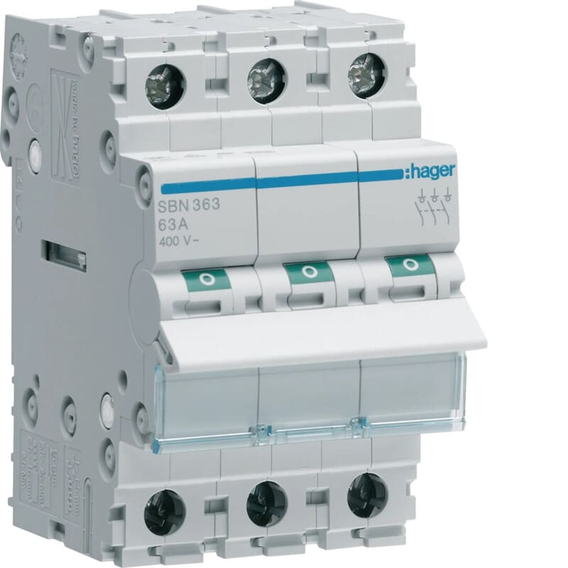 HAGER - Kuormankytkin vipu - SBN363 0-1 3N 63A 400VAC DIN