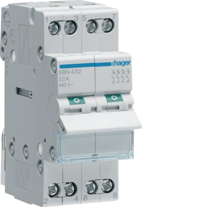HAGER - Kuormankytkin vipu - SBN432 0-1 4N 32A 400VAC DIN