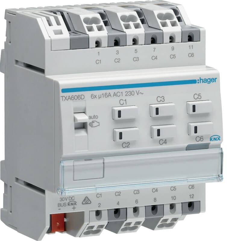 HAGER - Lähtöyksikkö KNX easy KNX - TXA606D 6x16A RLCV T DIN
