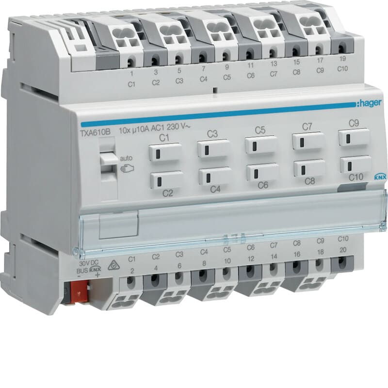 HAGER - Lähtöyksikkö KNX easy KNX - TXA610B 10x10A RLV T DIN