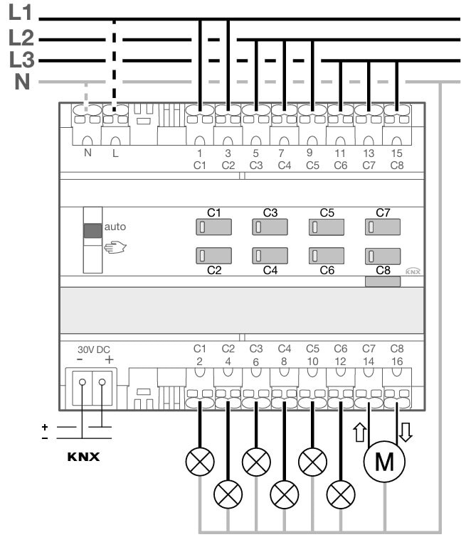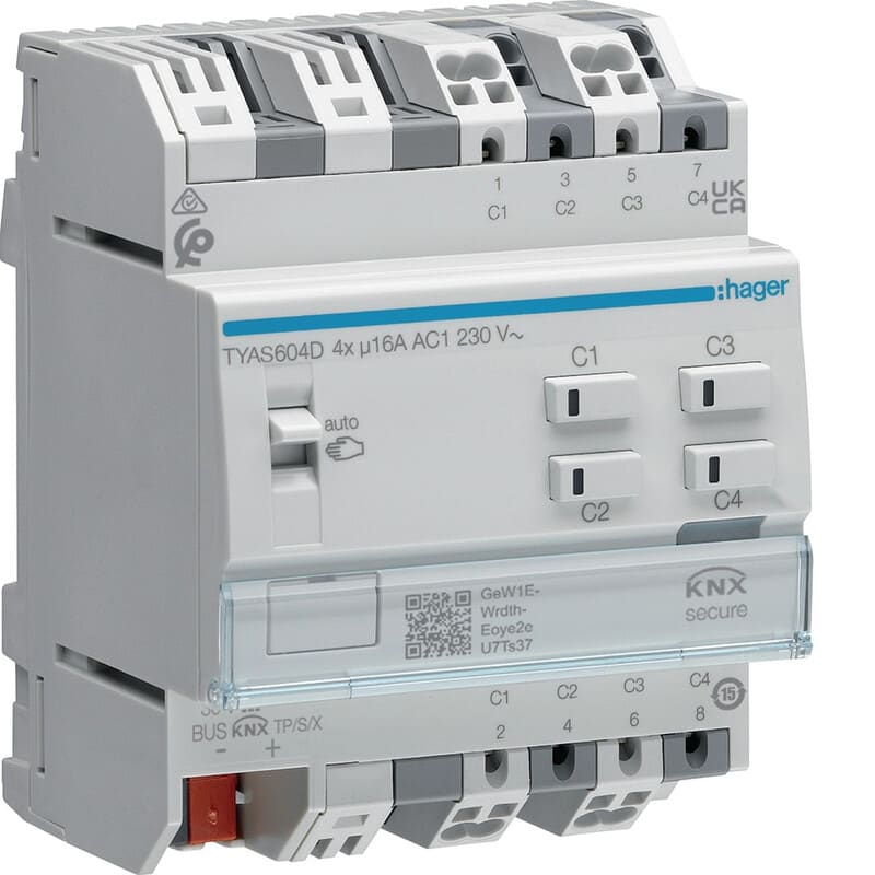 HAGER - Lähtöyksikkö KNX - TYAS604D 4x16A RLCV Secure DIN
